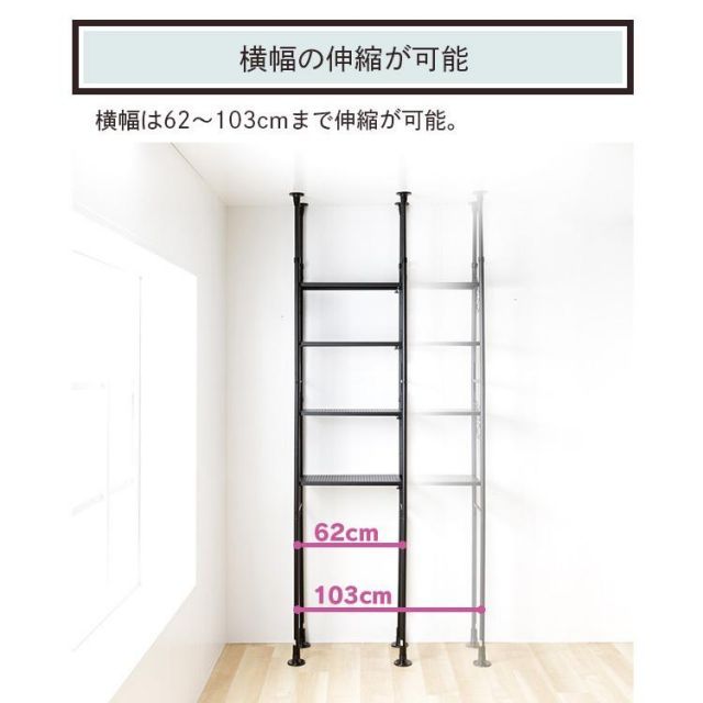 空間を有効活用できる突っ張りシェルフ。