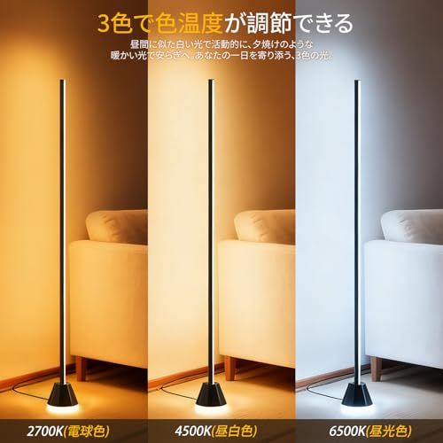【調光・調色可能&24WLEDライト】調光調色と組み合わせて、色温度を電球色から昼光色まで調整できます。好きな色をおしゃれに作成することができるフロアライト。明るさ調整が5段階調光の親切設計なスタンドライトとなります。シーンに応じて好みの明るさや色温度で光を当てられます。