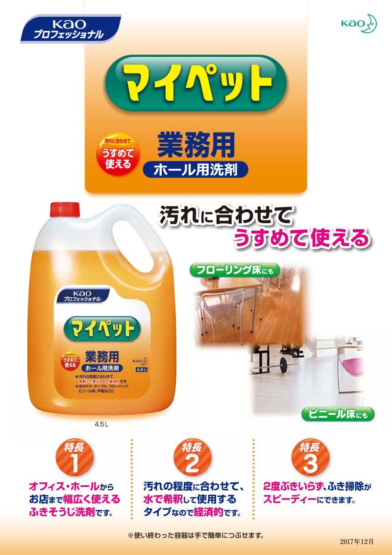 花王 マイペット 4 5 L 4本 1ケース 希釈使用タイプ ホール用洗剤 床掃除 ふき掃除 業務用 大容量 詰め替え 詰替 経済的