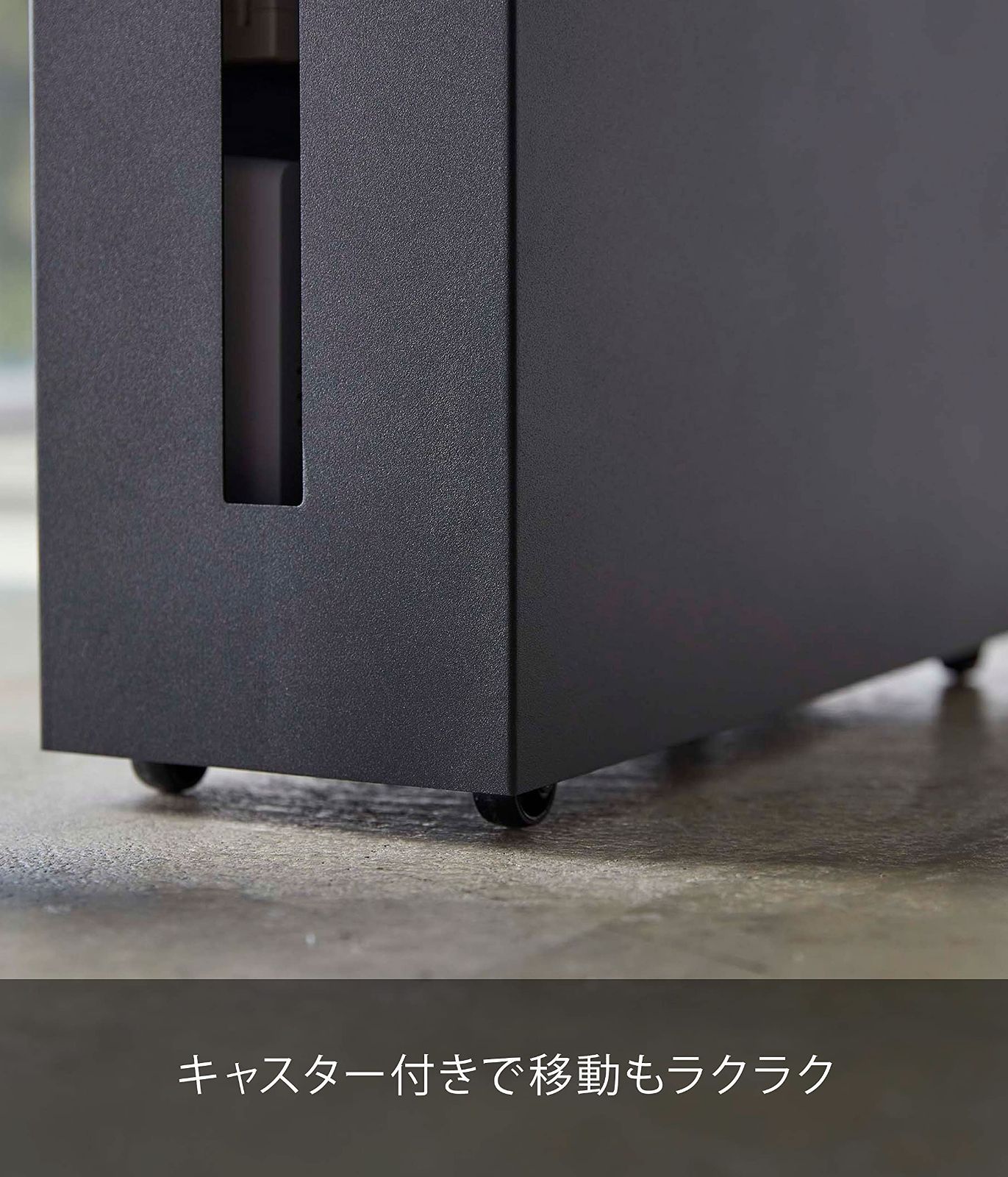 山崎実業(Yamazaki) キャスター付き ケーブル収納 ラック ブラック 約W40.1×D15.1×H34.8cm タワー 隠せる周辺機器 いたずら防止 テレワーク 5404