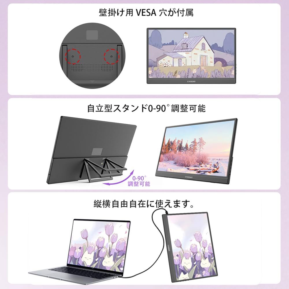 15.6型 モバイルモニター 大画面フルHD 1920*1080 IPS液晶 178°の広い視野角で ディスプレイ ポータブル USB Type-Cディスプレイ給電に対応しており ミニHDMI PS4/XBOX/Switch/PC/Macなど対応 モバイルディスプレイ ラップトップモニター 在宅勤務 リモートワーク自立型 VESA 75mm