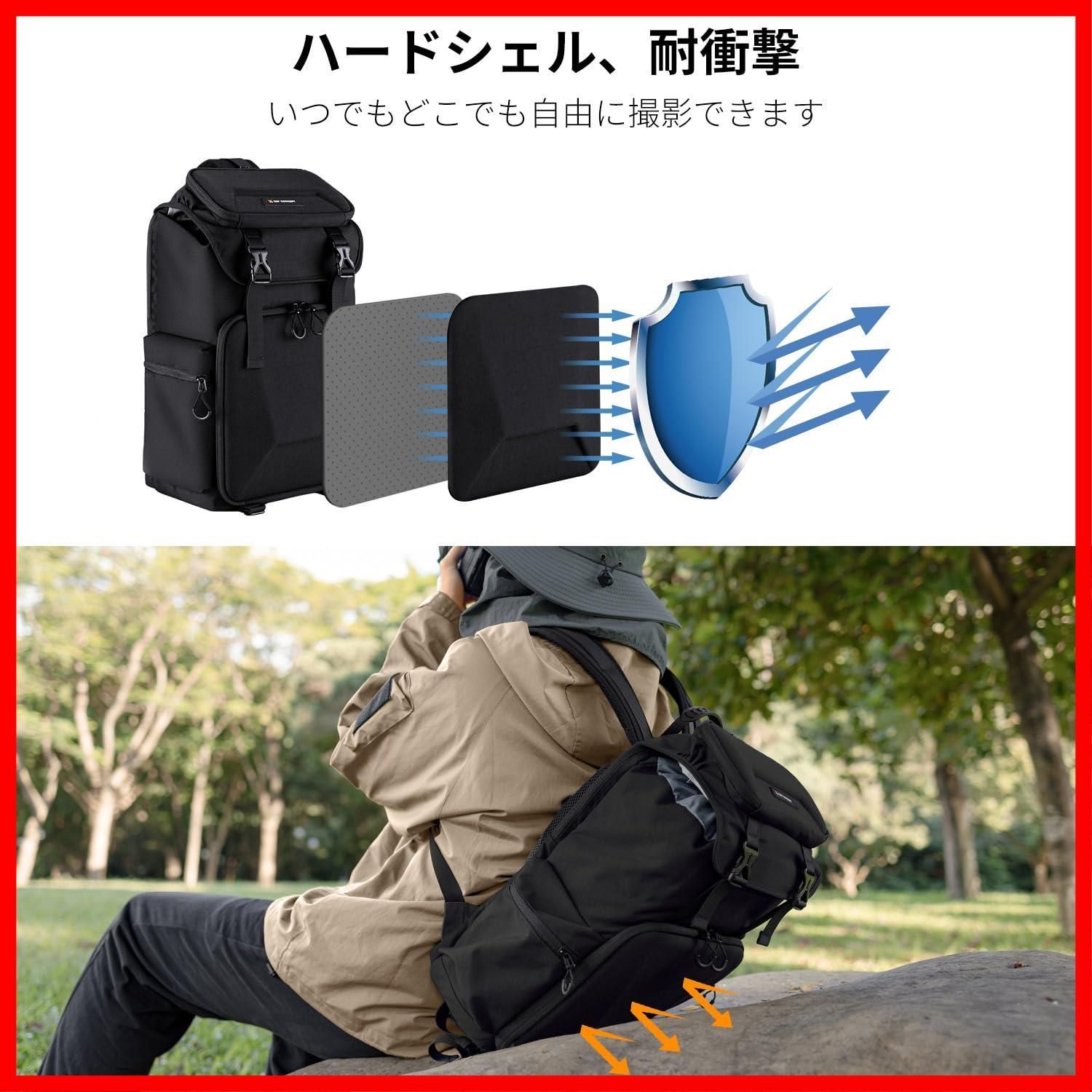 EVA材質防水耐衝撃 レインカバー付き おしゃれ 2気室 大容量 16インチPC収納&三脚収納可 25 L リュックサック カメラリュック 旅行 撮影 登り アウトドア撮影に適用 カメラバッグ Concept K F