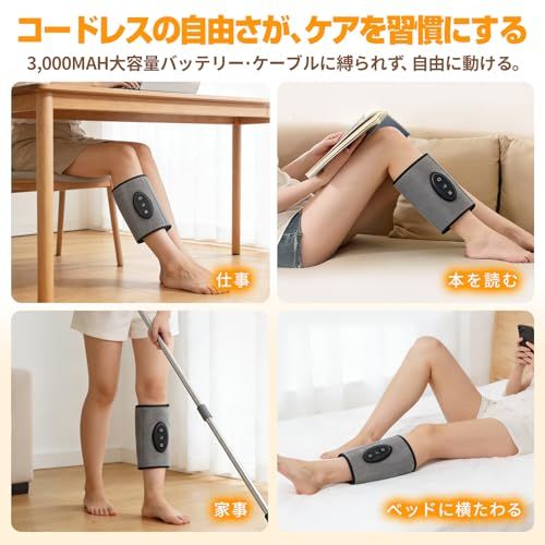 ふくらはぎケア 革新のEMS&TENS 空圧式 温熱機能 片足タイプ コードレス TYPE C充電式 3段階強度調節 3段階エアー調節 3段階温度調節 太ももケア 15分自動オフ オフィス用 家庭用 男女兼用 軽量 コンパクト 持ち運び便利 fe 35 d 64 c