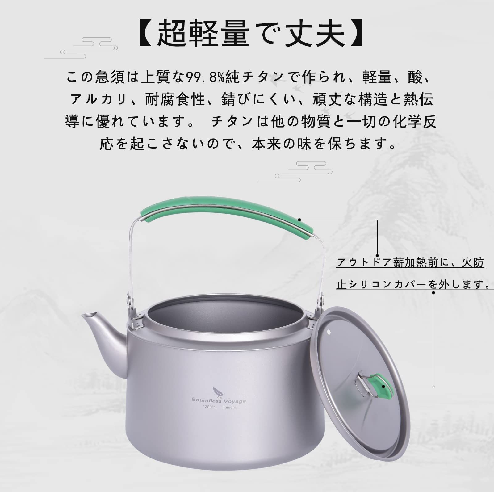 iBasingo&Boundless Voyage 800cc 超軽量 チタン急須 丸形 ティーポット 直火 アウトドアケトル 大容量 キャンプ食器 ピクニック ケトルクッカー調理器具 正規品 JP-Ti3101D