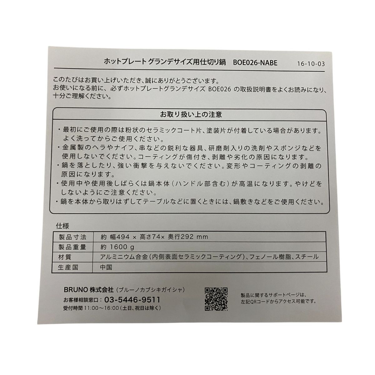 こちらは「BRUNO ホットプレート・グリル鍋 BOE026-NABE 調理器具 未使用 」でございます。