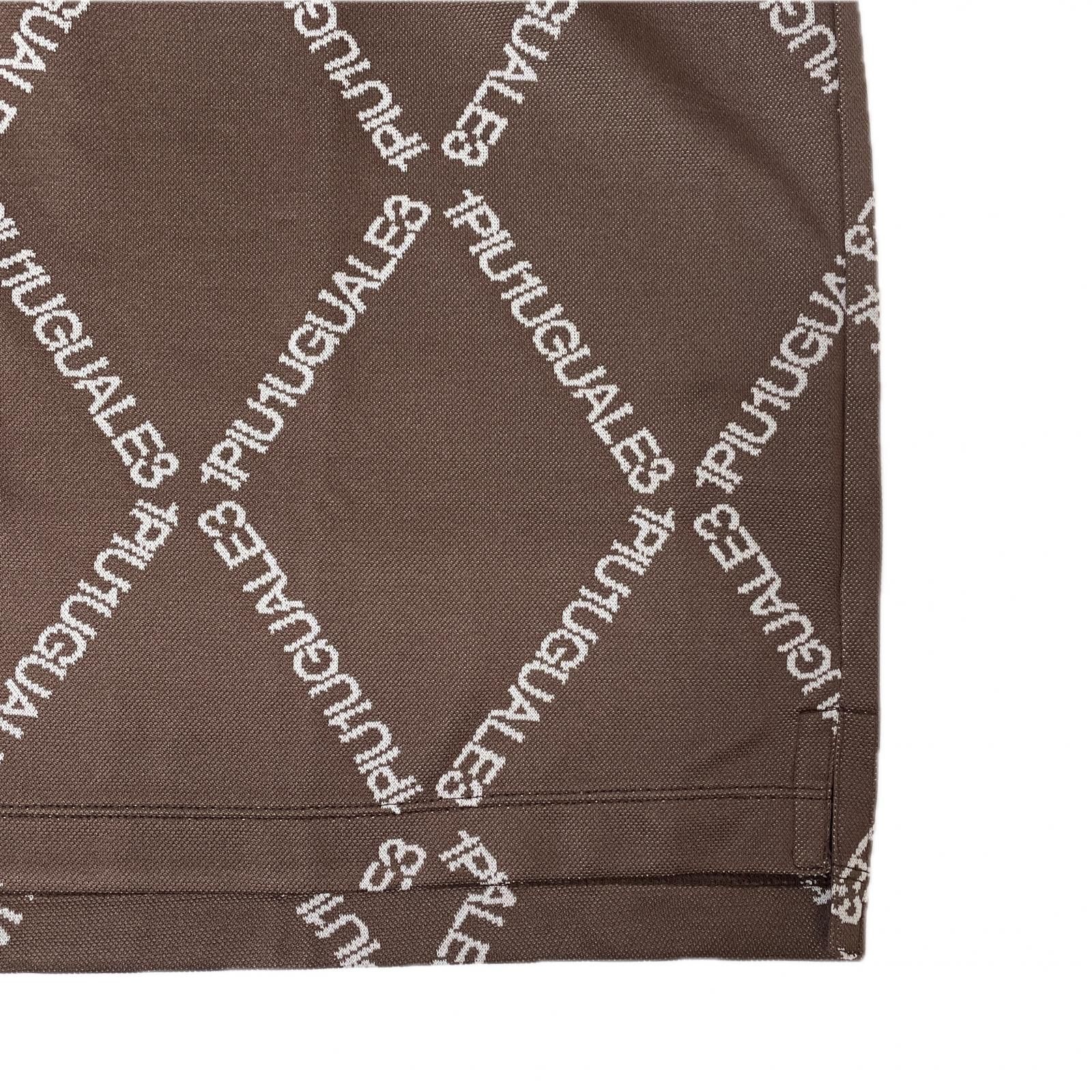 メンズ ウノピュウノウグァーレトレ 1 piu uguale 3 半袖シャツ 5 L 茶 引掛け有り 総ロゴ柄 モックネック