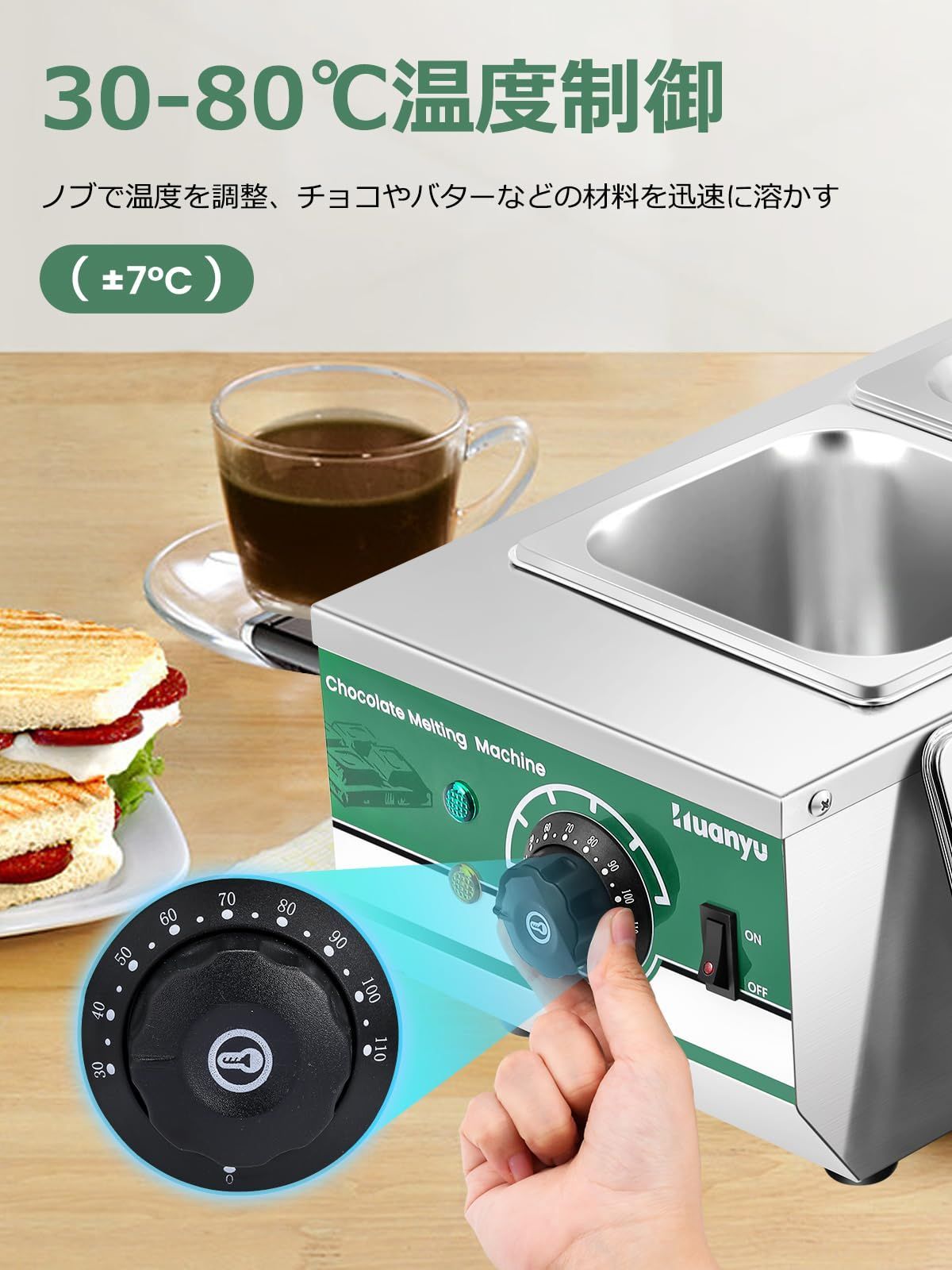 Huanyu チョコレート溶融機 2個ポット 溶融用鍋 30-80℃ 湯煎 食品級ステンレス製 DIYチョコ/ミルク/クリーム/バター/チーズ 材料溶融 保温 手作りキャンドル/石けん 日本語説明書付き (110V)