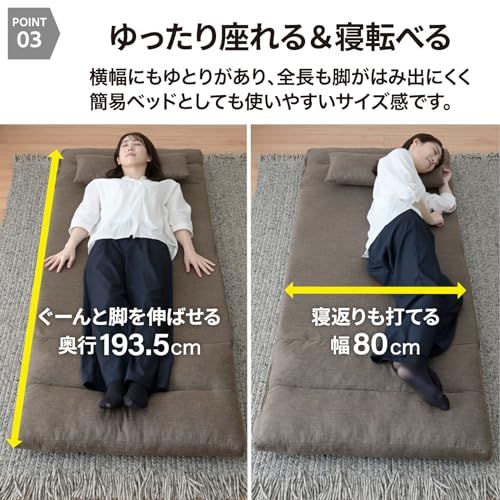 【ゆったりサイズ】幅80cmでゆったり座れるサイズ感です。広げると、ベッドとしてものびのび使える奥行193.5です。