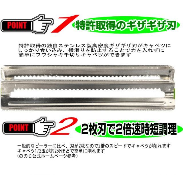 TVで紹介されました! キャベピィMAX CBP 04 G ピーラー ののじ 特許 刃 千切り ギザギザ刃 時短 調理 キャベツ ふわふわ 料理 指かけ ストレスフリー 安定構造 スライス 薄切り キャベツピーラー きゃべぴ