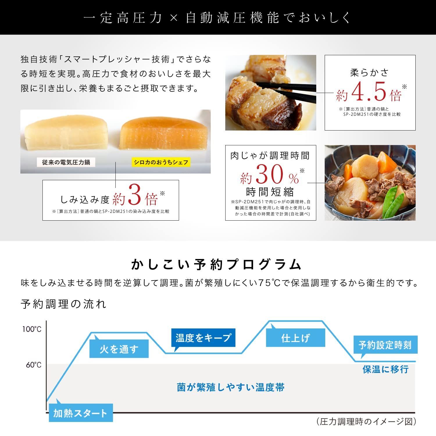 シロカ 自動減圧機能付き電気圧力鍋 おうちシェフ PRO L [スマートプレッシャー技術(高圧力100Kpa×自動減圧)/1台12役/レシピ本付き/かしこい予約プログラム/発酵/甘酒/圧力糖質オフ炊飯/電気圧力鍋] SP-5D152H グレー