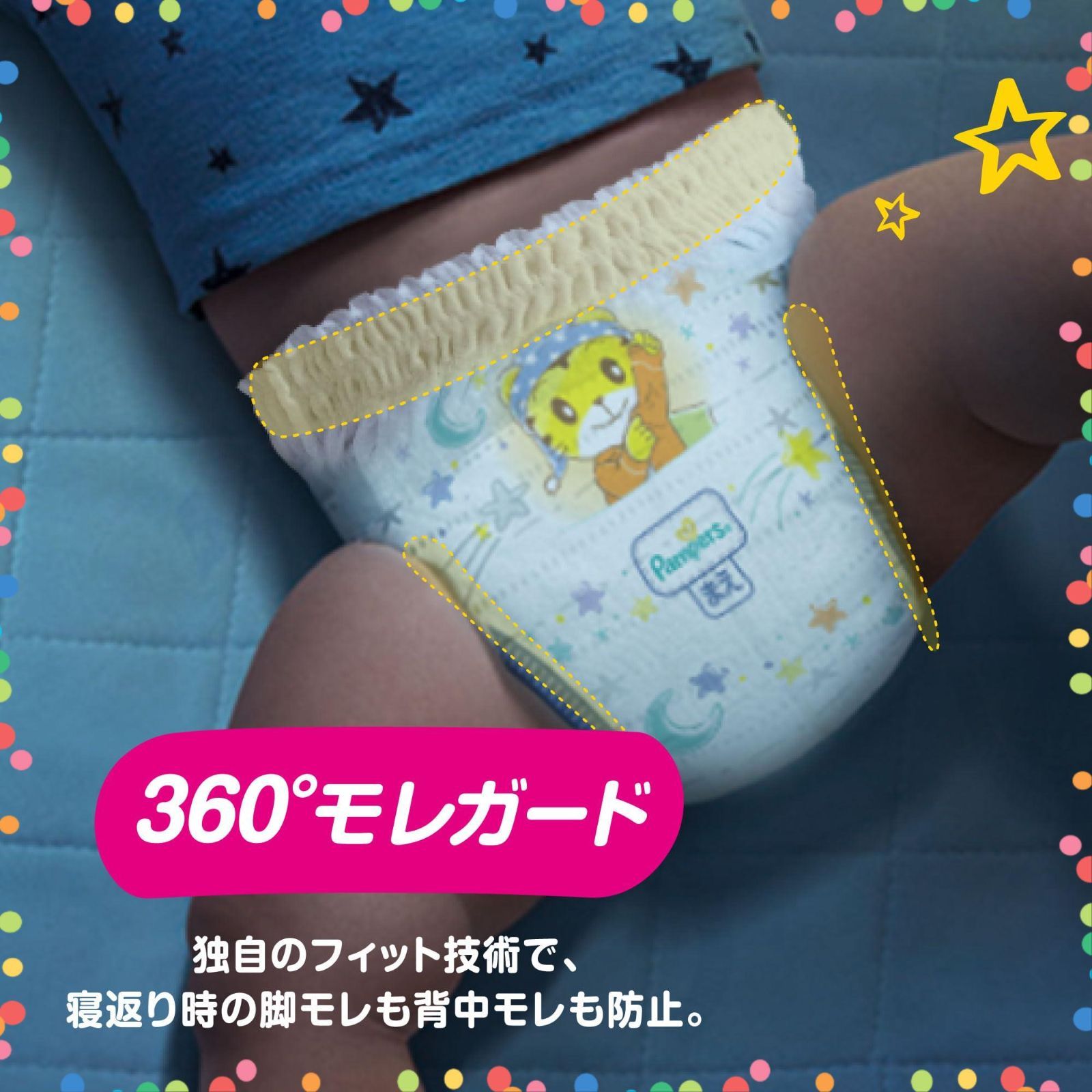 【360°モレガード】独自のフィット技術で寝返り時の脚モレも背中モレも防止。