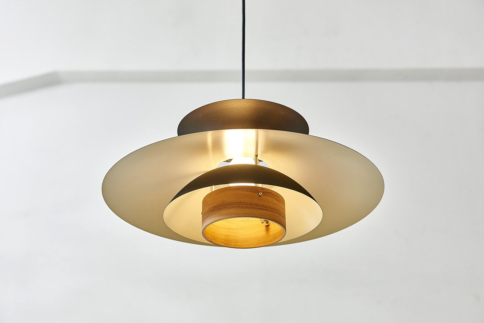 【使用シーン】 ダイニングでは重ねたセードからこぼれるあたたかな光がテーブルの上の料理を美味しく演出し、天井にも広がる光はリビングを和やかに演出します。コードの長さを調節することができるので、テーブルやソファの高さに合わせたスタイリングが可能です。ナチュラル、ブラウン、ウォールナットの3つのカラーバリエーションは様々なインテリアにフィットします。