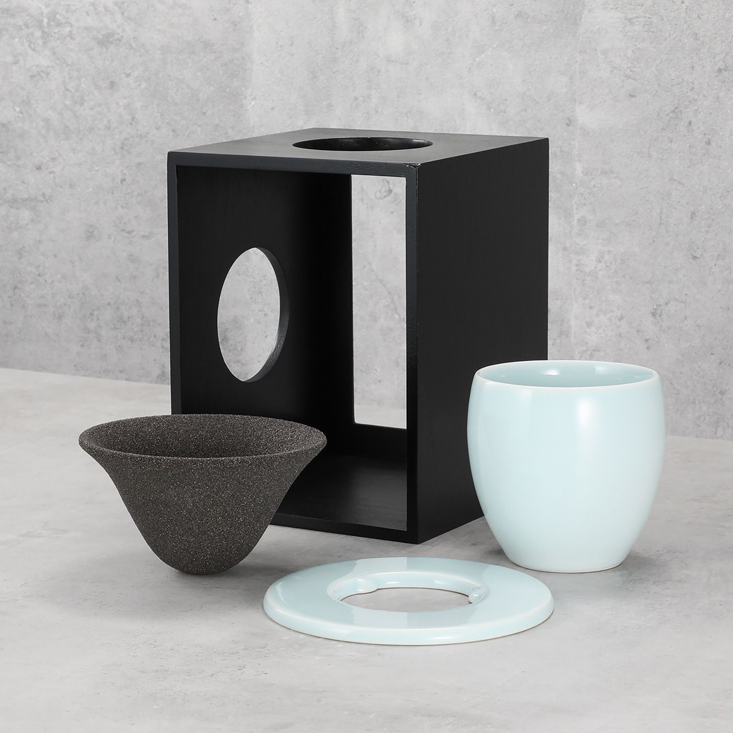 カップ、ドリッパーともに青白磁(白)という、焼き物で昔ながら愛される伝統的な色彩の一つを表現。