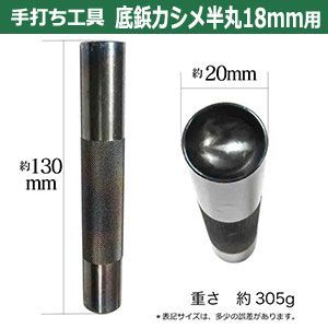 手打ち工具 焼入れ 底鋲カシメ 半丸 18 mm 底びょう カシメ mm用 打棒 1本入 手打ち棒 130 0 20 SK鋼材 鉄製 炭素工具 焼き加工 ソコビョウ 半球型 テウチグ テウチボウ 強度 耐久性 バック