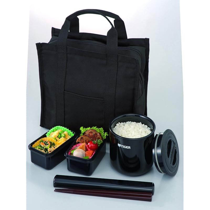 商品名:タイガー魔法瓶(TIGER) タイガー 魔法瓶 保温 弁当箱 ステンレス ランチ ジャー 茶碗約 1.8 杯分 トートバッグ付き ブラック LWY-T036-K Tiger