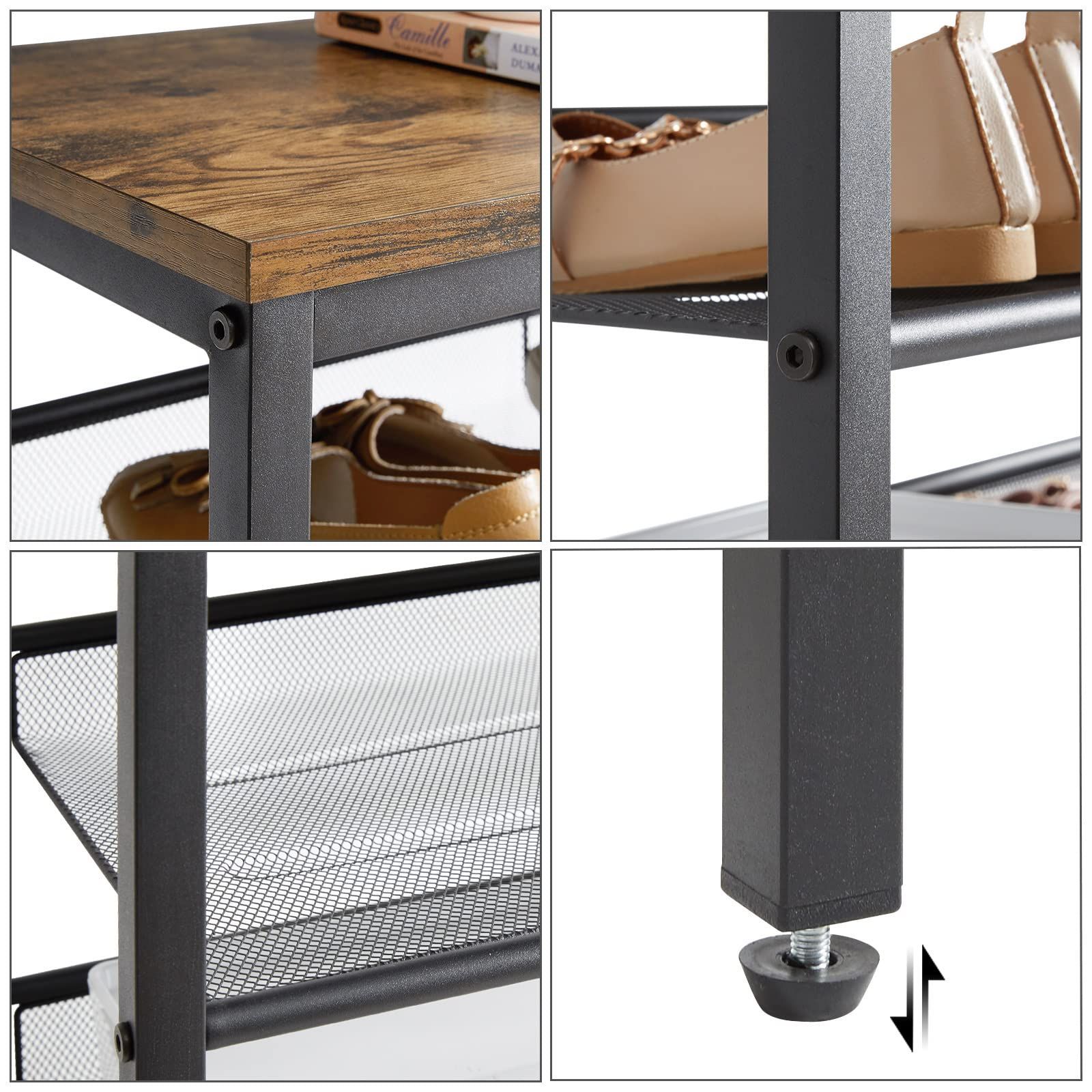 YMYNY シューズラック 5段 メッシュ棚調整可能 靴棚 下駄箱 省スペース オープンラック 16足用 大容量 通気 木製天板 サイドテーブル 靴収納 靴置き 靴箱 玄関テーブル W75.5×D30×H87cm 茶色 JPHTMJ083H