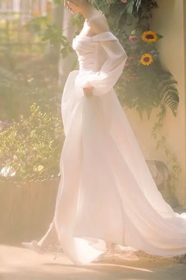 ボリューム袖 ウェディングドレス 長袖 オフショル Aライン 韓国