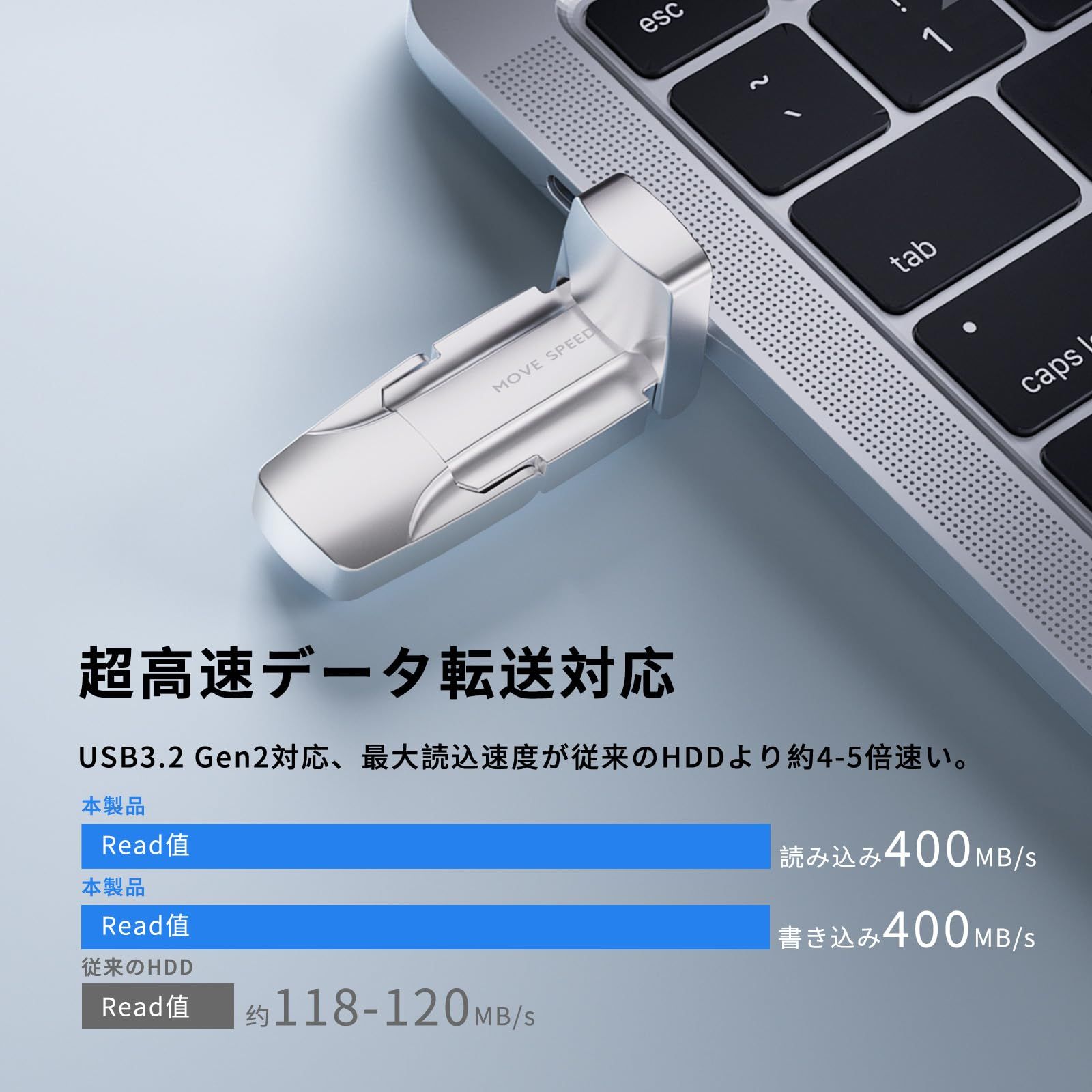 MOVE SPEED 外付けSSD スティック型 USB 3 2 Gen 最大読込速度570 MB 秒 Type A C両対応 金属筐体 Win Mac PS 5 4 iPhone 15 16 17シリーズ対応 小型 ポータブル SSD