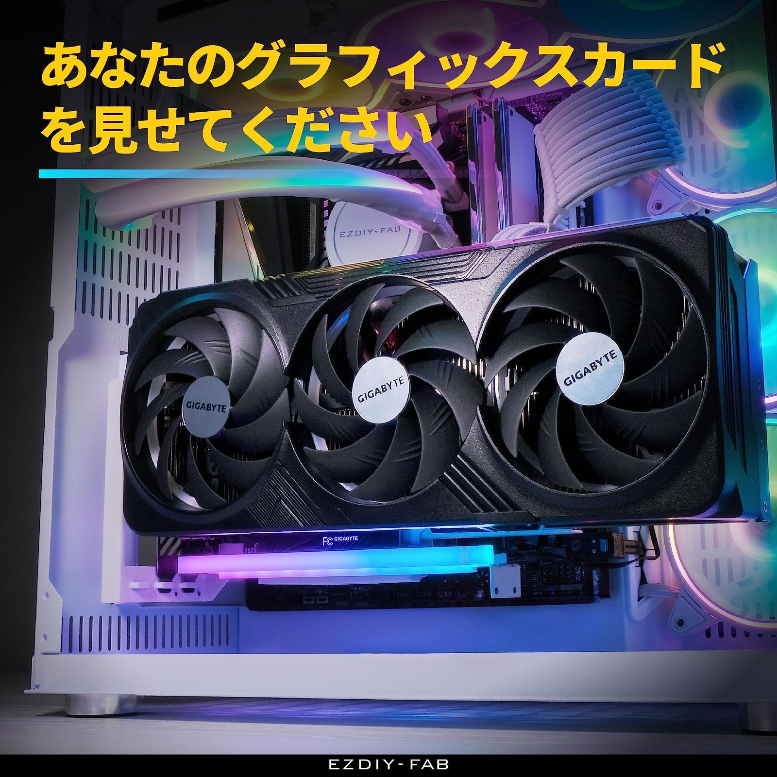 EZDIY-FAB 新しいRGB 垂直 PCIe4.0 GPUブラケット 垂直グラフィックカードホルダー ARGB 5V 3ピンLEDライト同期 PCIe 4.0 X16 Gen4 白いライザーケーブル付き 90度直角17cm