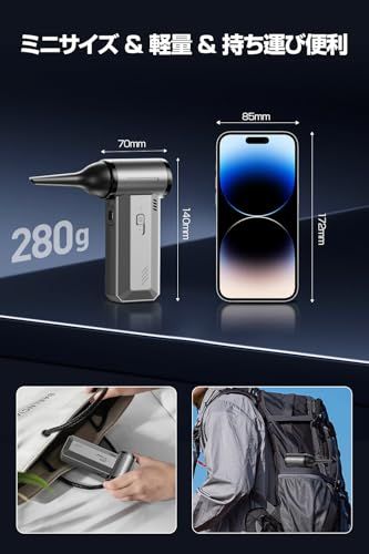 エアダスター 電動エアダスター ブロワー 最強 洗車 ブロアー 2025夏新開発 2 in 1 エアダスター&ハンディクリーナー 吹き飛ばし 吸い込む 車載掃除機 超強力 高速回転 75 m s圧倒的な風速 Type C充電式 48 c 3 e 4 f 6