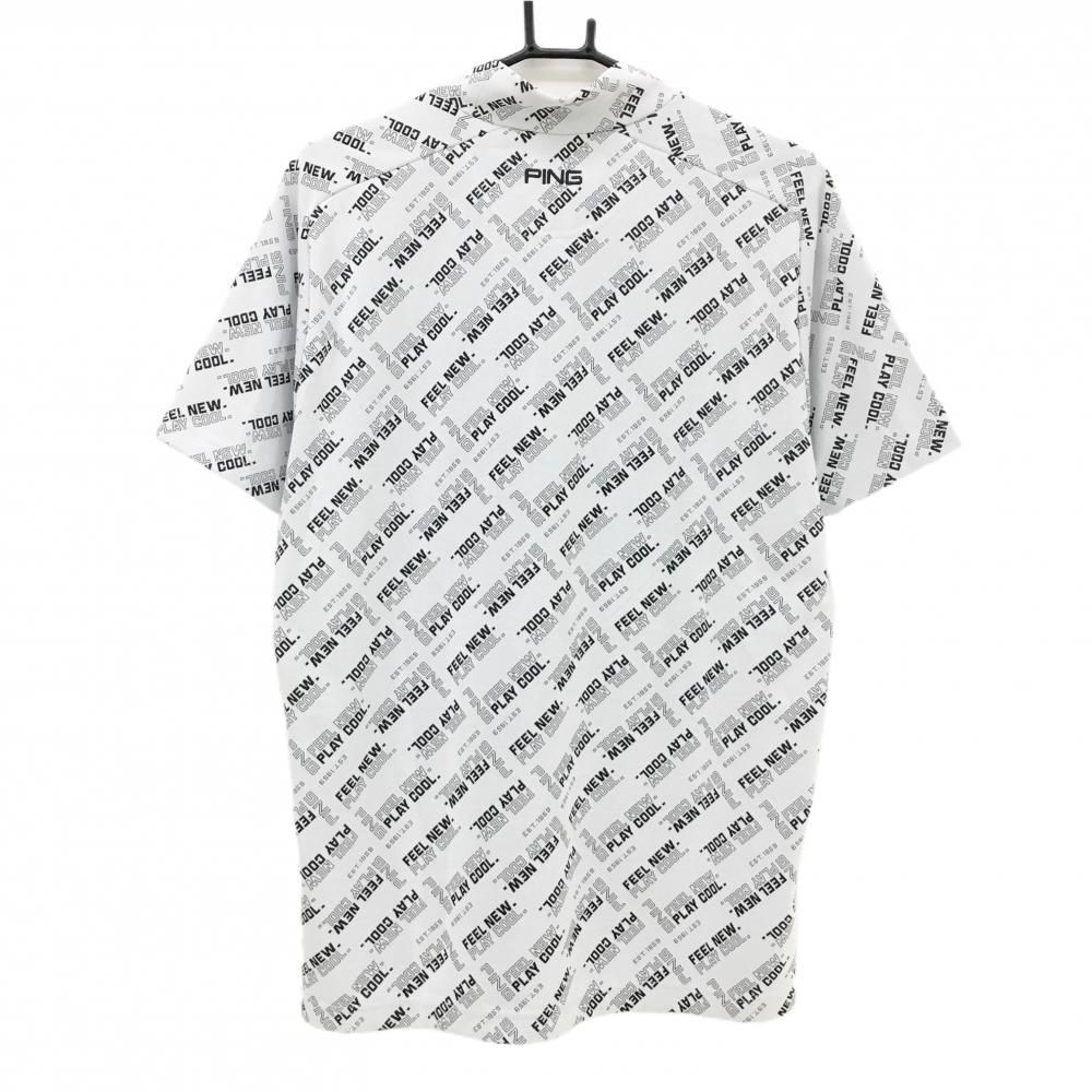 超 ピン 半袖ハイネックシャツ 白×黒 ロゴ総柄 メンズ LL ゴルフウェア モデル PING