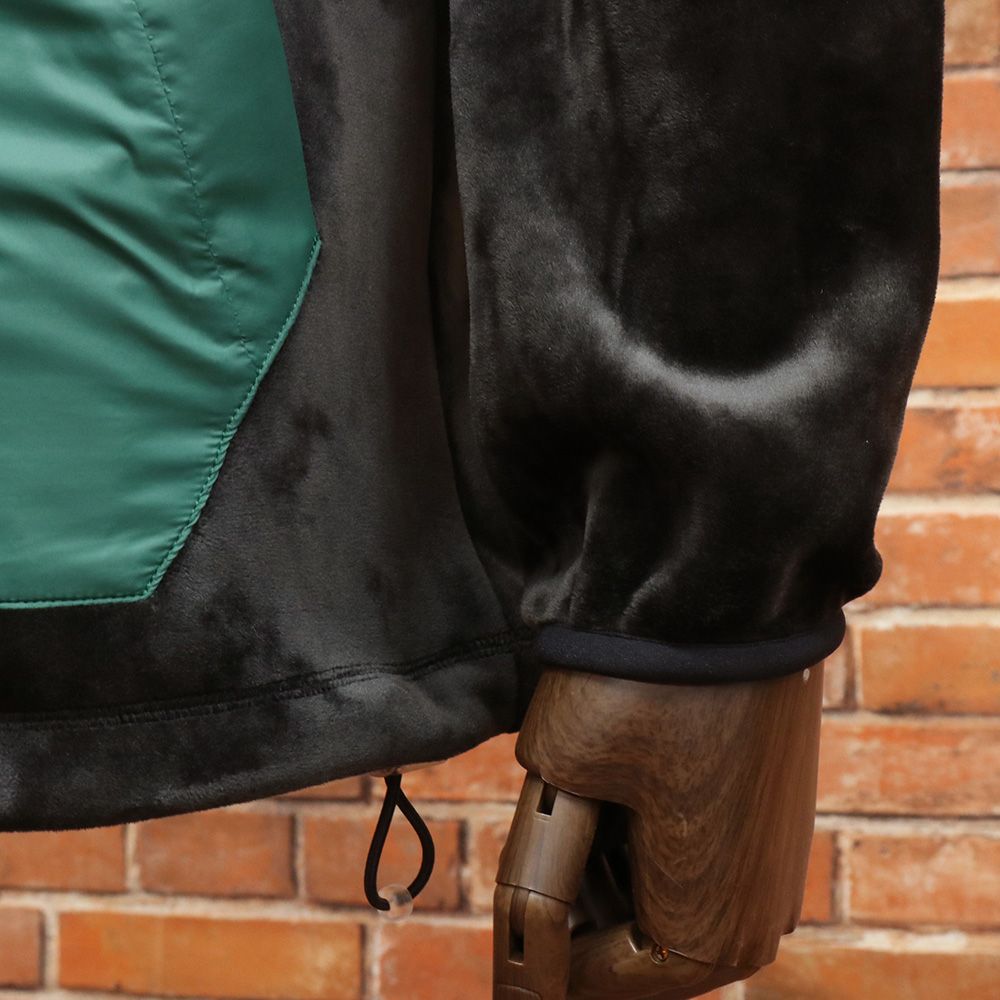 肩とポケット部分にはナイロンパネルを切り替え、スタイリッシュなコントラストを表現。立体的に刻印されたブリッジロゴが胸元にアクセントを添えます。裾のドローコードや袖口・フードのゴム仕様により、冷気の侵入を防ぎながら動きやすさも確保しました。