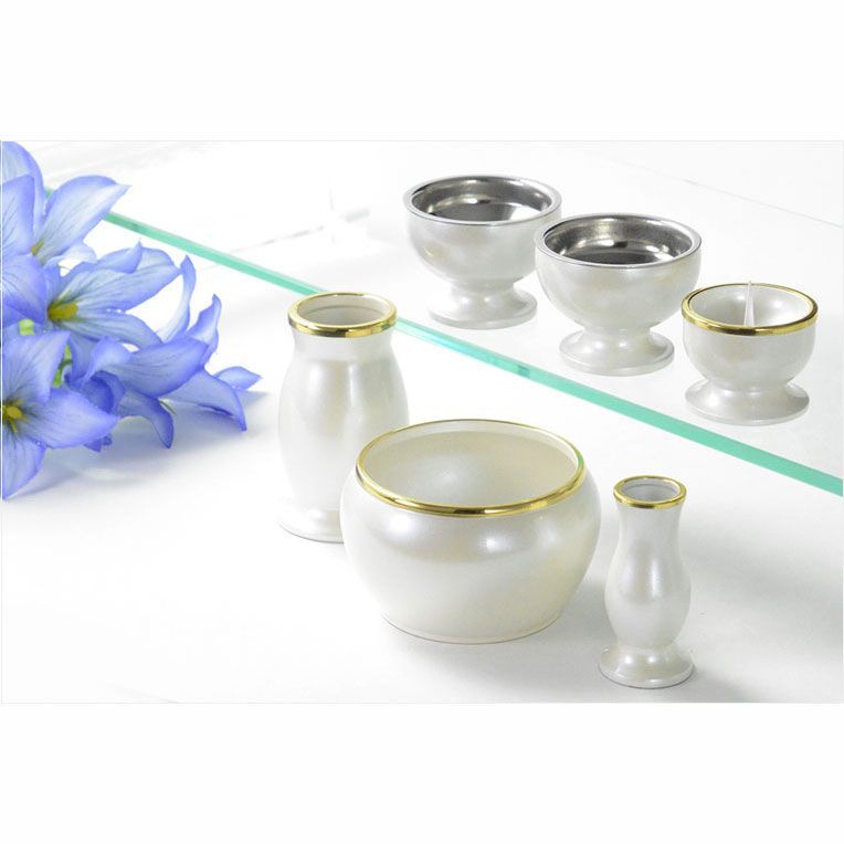 仏具 小さなモダン仏具セット チアリ― パール調ホワイト 2 0寸