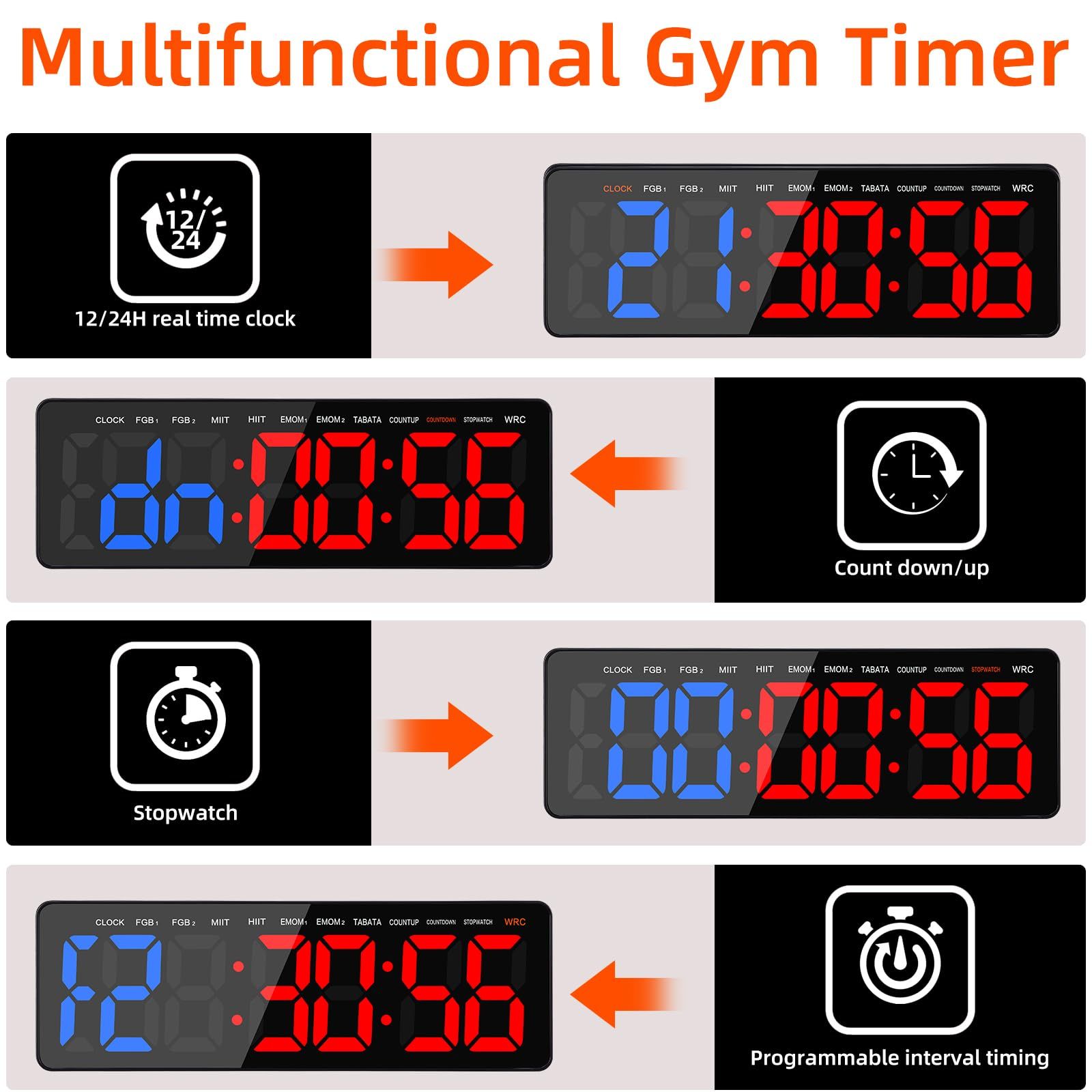 16 5インチ スポーツタイマー 大型 インターバルタイマー リモコン付き 3 4インチ大字 ストップウォッチ 壁掛け式 トレーニング デジタイマ チャレンジ 勉強 自宅 mケーブル TABATA EMOM MIIT HIIT 青と赤