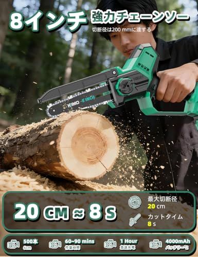 2026 8インチ 4000 mAh大容量バッテリー 付属 KIMO 高枝チェーンソー 充電式 1台2役 高枝切り電動チェーンソー ハンディチェンソー 電動 チェンソー 急速充電器 ブラシレスモーター 延長ポール145?280 cm無段