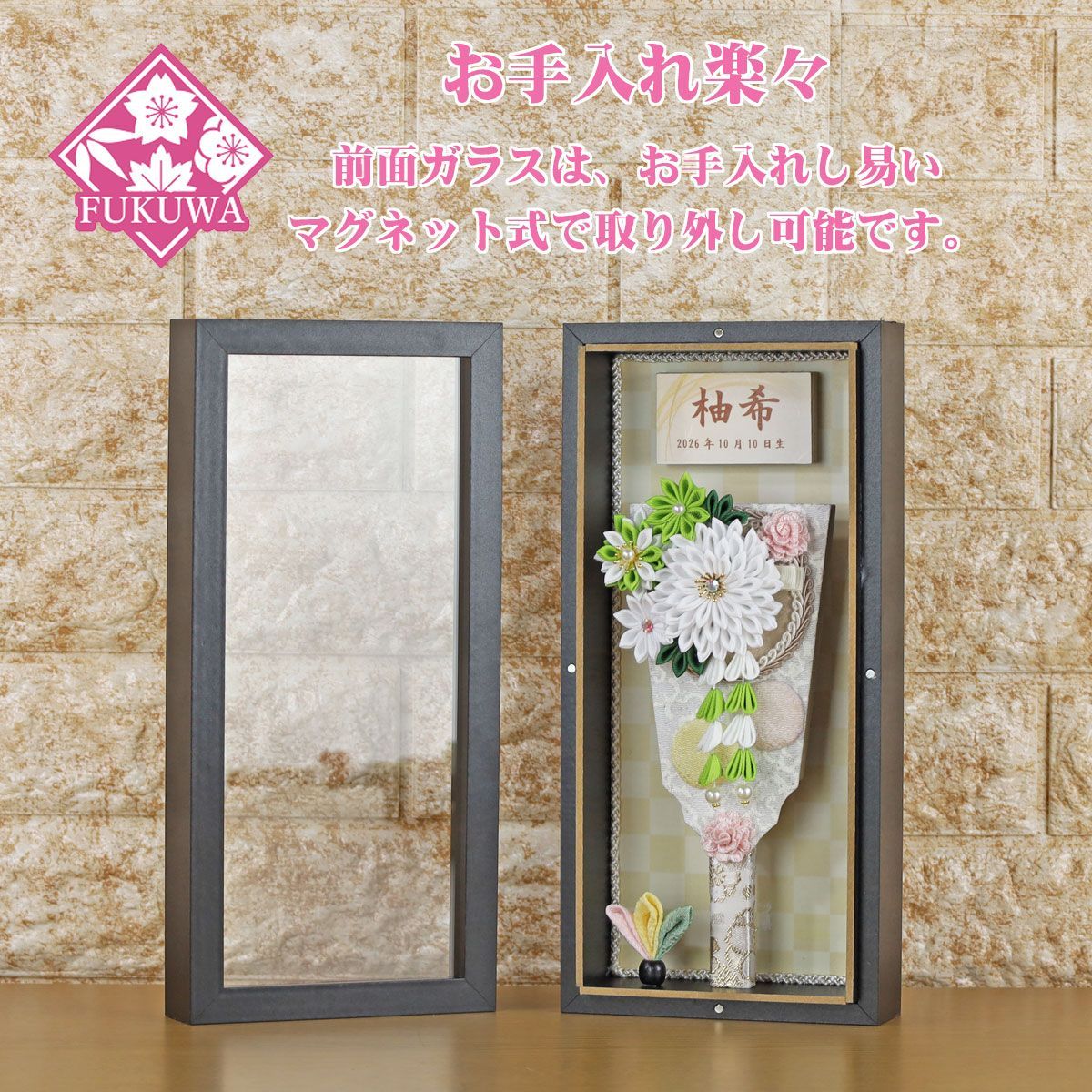 羽子板 初正月 ケース入り 7号 つまみ細工 羽子板飾り 翠~Sui~ ガラスケース入り fukur 8 168 コンパクト かわいい インテリア おしゃれ 花羽子板 ミニサイズ お祝い 壁掛け