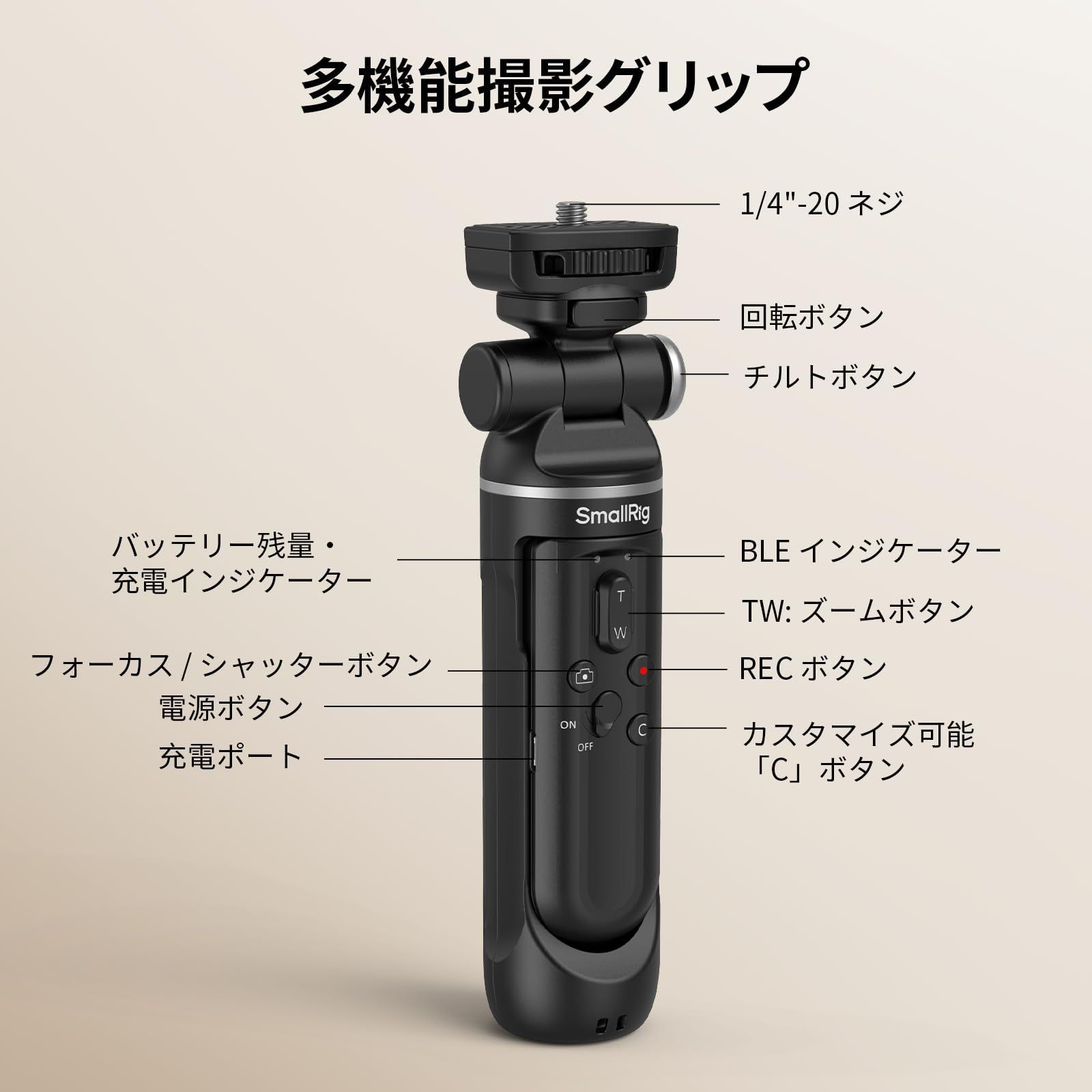 【ワイヤレス シューティング グリップ】SmallRig SR-RG2 多機能ワイヤレス シューティング グリップ4551は、カメラ グリップ、自撮り棒、デスクトップ三脚を 1 つの多機能デバイスに統合し、vlog、ライブ ストリーミング、日常の撮影に最適なツールです。