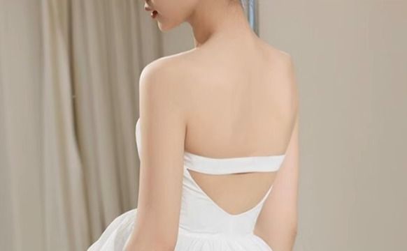 チューブトップ ウェディングドレスミニ丈 トレーン 大人可愛い