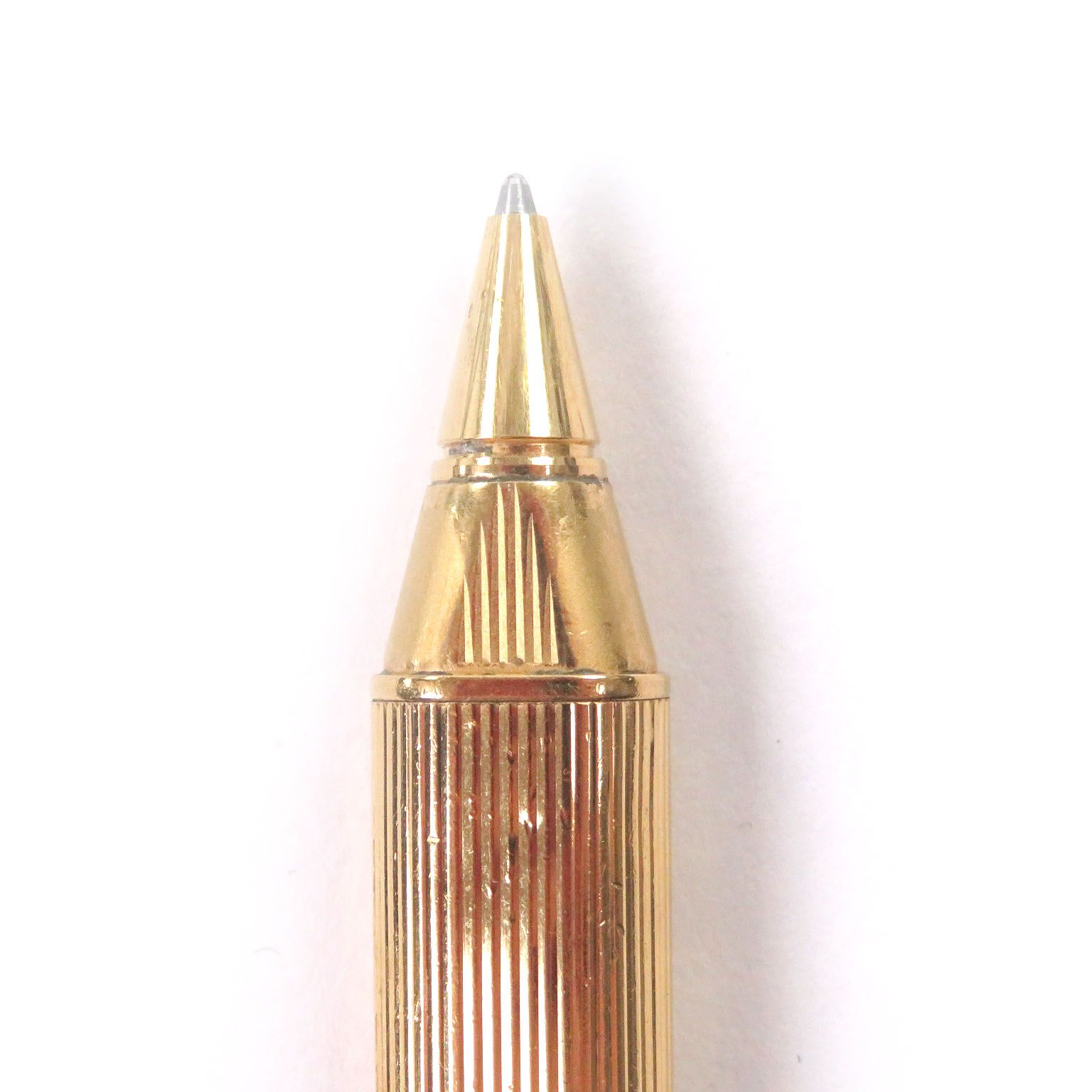 □Cartier カルティエ ヴィンテージ トリニティ ストライプ柄 キャップ式 ボールペン ゴールド グリーン フランス製 メンズ 筆記 済み