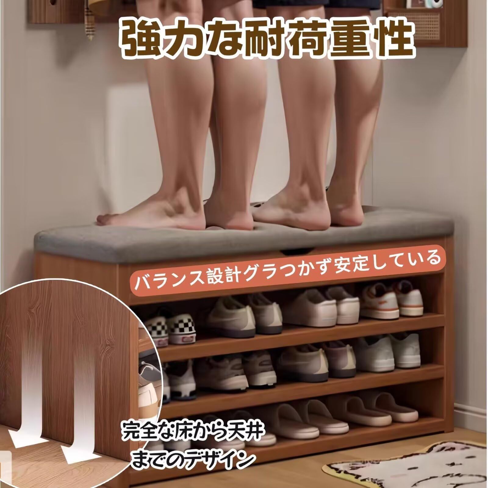 ??【大容量の収納空間】玄関にベンチを置くと同時に、3段分の収納スペースを確保できます。十二足の靴を置くことができて、日常の靴を履くニーズを満たすことができます。それ以外にも、フラップ式の隠し収納があり、財布、鍵、手袋、靴カバーなどの小物を収納できます。