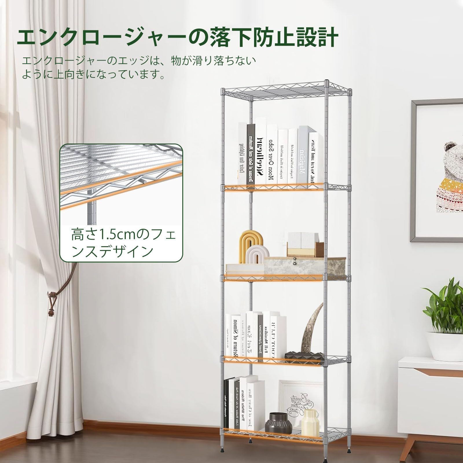 幅60 奥行40 高さ150 cm 収納ラック 耐荷重200 kg メタルラック シルバー 棚 5段スチールラック