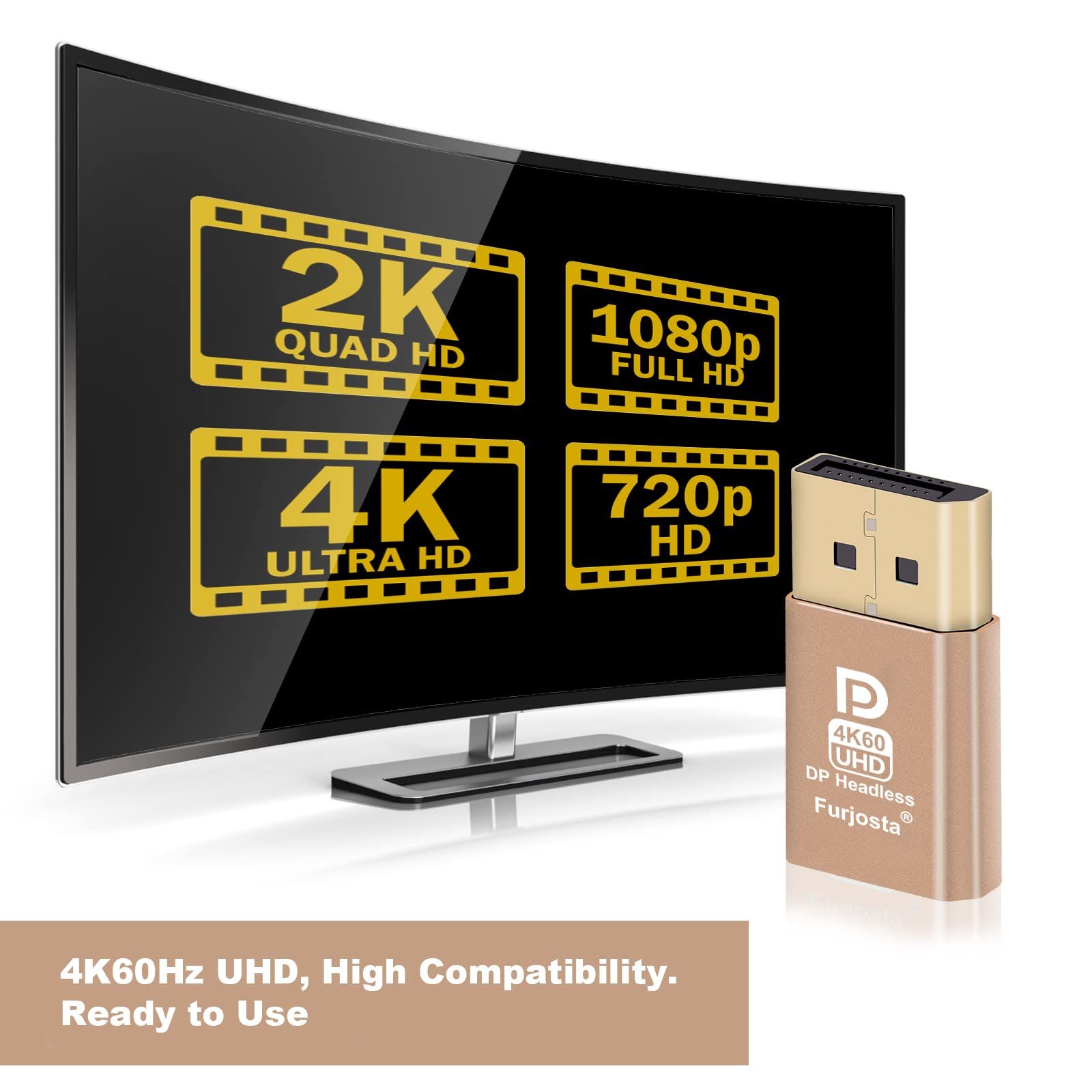 ブルーライト付きPC 4K DisplayPort仮想ディスプレイエミュレーター、ヘッドレスモードに対応、1080@120Hzから4096x2160@60Hzまで対応、PCおよびMacに対応-3