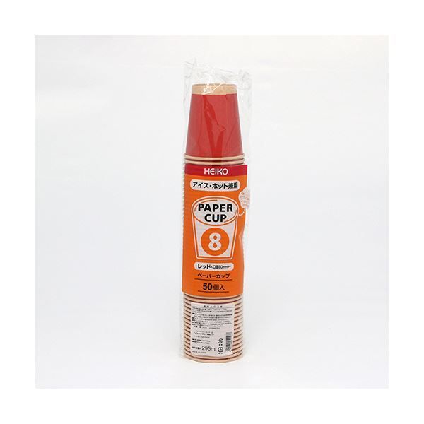 シモジマHEIKO ペーパーカップ アイス ホット兼用 8オンス 295 ml 未晒レッド 口径80 mm