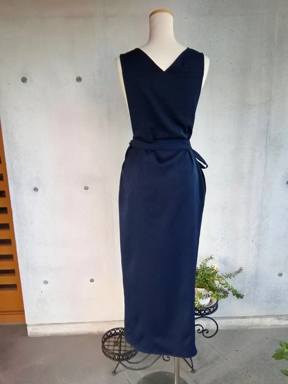 7 L 10 ストレッチスエード ネイビー茶道お稽古用エプロン羽織って着るウエストリボン127100 35 3
