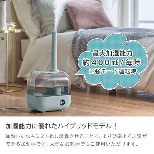 加熱式と超音波式を組み合わせたハイブリッドタイプ。 加熱した水をミスト化し噴霧させることでより効率よく加湿できる加湿器です。本体には銀系無機抗菌剤を練り込んだ樹脂を使用。 ヌメリや赤カビも抑制し、より清潔にお使いいただけます。