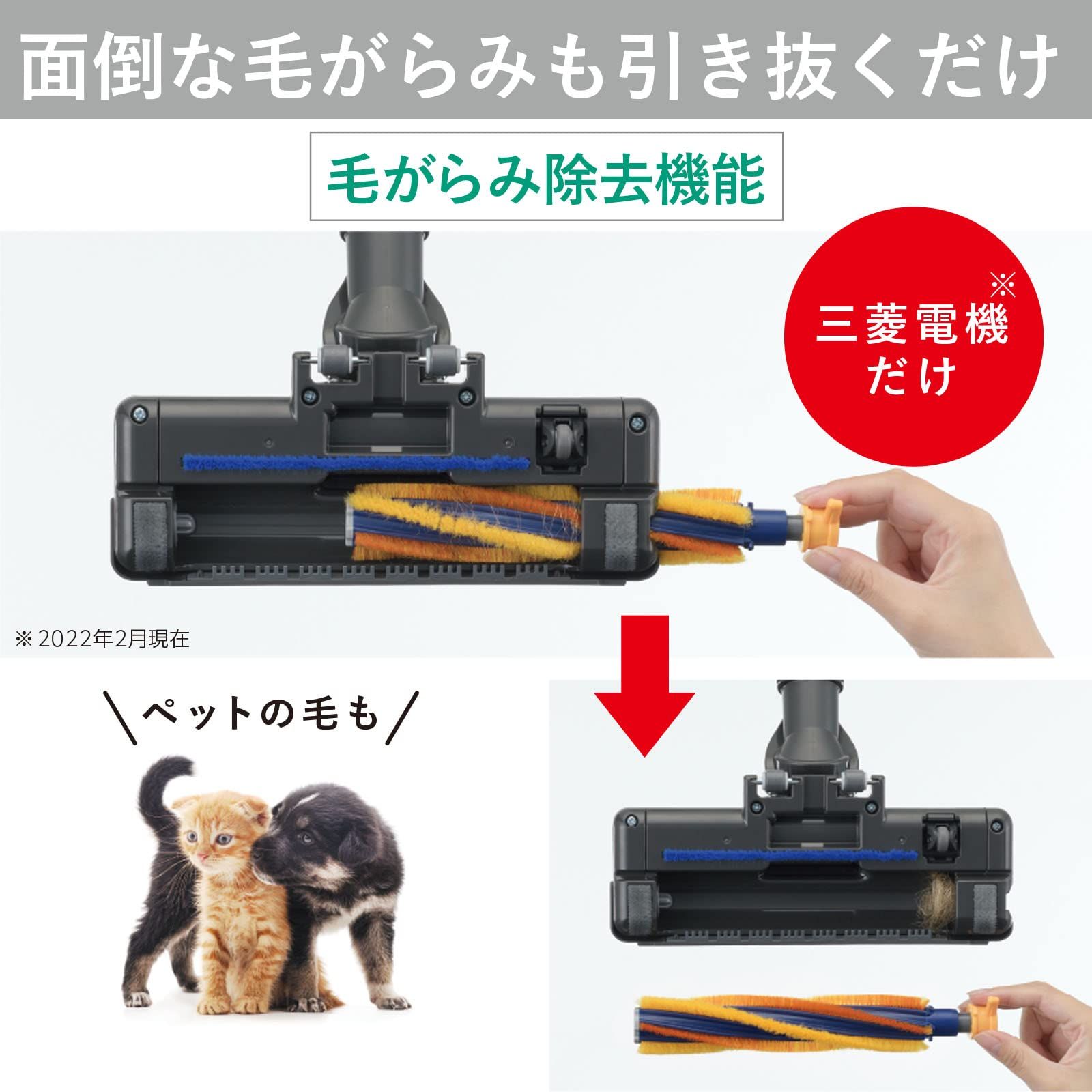 ●【毛がらみ除去もワンタッチ】回転ブラシの面倒な毛がらみもサッと引き抜くだけで簡単除去しお手入れの煩わしさを軽減。引き出した回転ブラシは水洗いで清潔に。