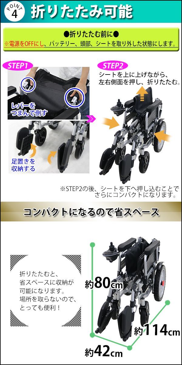フルフラット可能!折りたたみ可能!家庭用電源で充電出来る自走介助兼用フルリクライニング電動車椅子です。