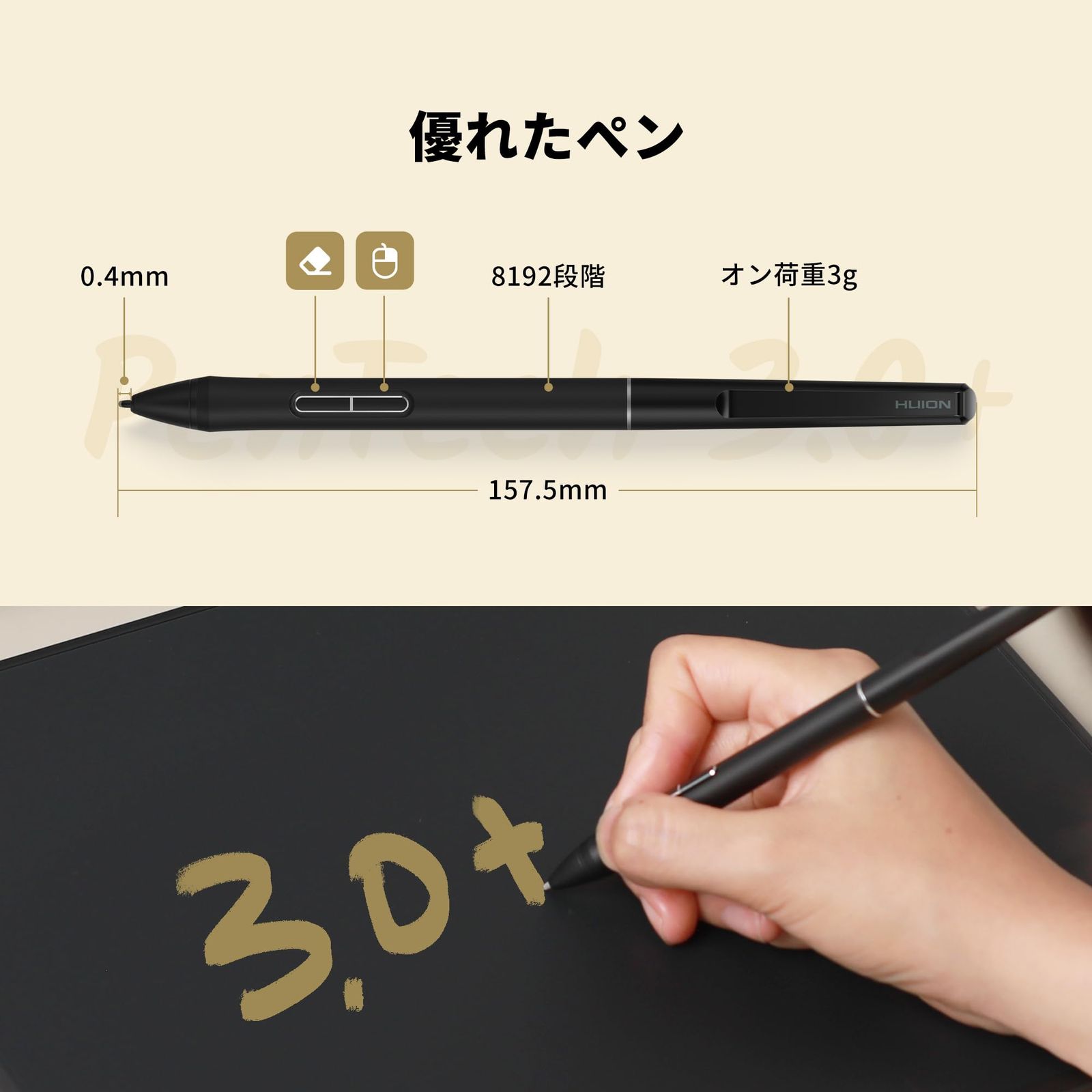 【優れたペン】スリムペンPW550Sを同梱、より繊細な圧力感知で高品質のデザインやイラストを生み出せます。8192段階の筆圧レベルで精細な表現を可能に、低遅延ゆえイラストなどのクリエイティブ作業をスムーズにすることができる。更に、ペンのボタンがカスタマー可能で、個人の作業習慣に合わせて、それぞれにペイントソフトの各種機能を割り当てることもでき、作業効率を向上させる。