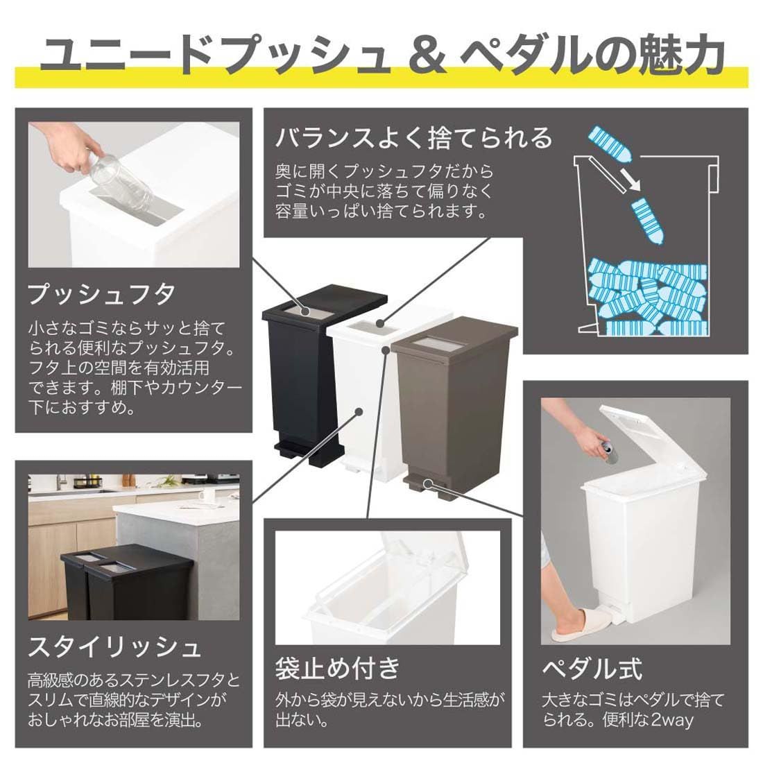 新輝合成 Shinki Gosei トンボ ユニード ゴミ箱 蓋を開けずにごみを捨てられる プッシュタイプ 軽いペダルでサッと開く キッチン 分別 30リットル ブラック セット 幅23 5 奥行41 高さ49 cm 蓋付き
