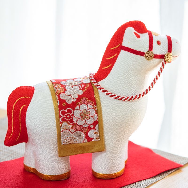 正月飾り2026年令和8年 ちりめん紅白梅午 招き午 馬 干支 うま 置物 和縁起物 新年お正月祝い 海外プレゼント 贈り物R 57