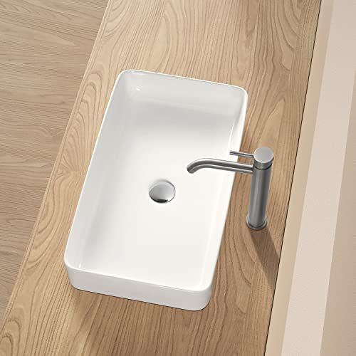 JOMOWN 排水セット付き 大型 洗面ボウル おしゃれ 手洗いボウル 605 355 110 mm 洗面ボール 置き型 陶器製 手洗い器 洗面台 長方形 po d 762 cc 9 c