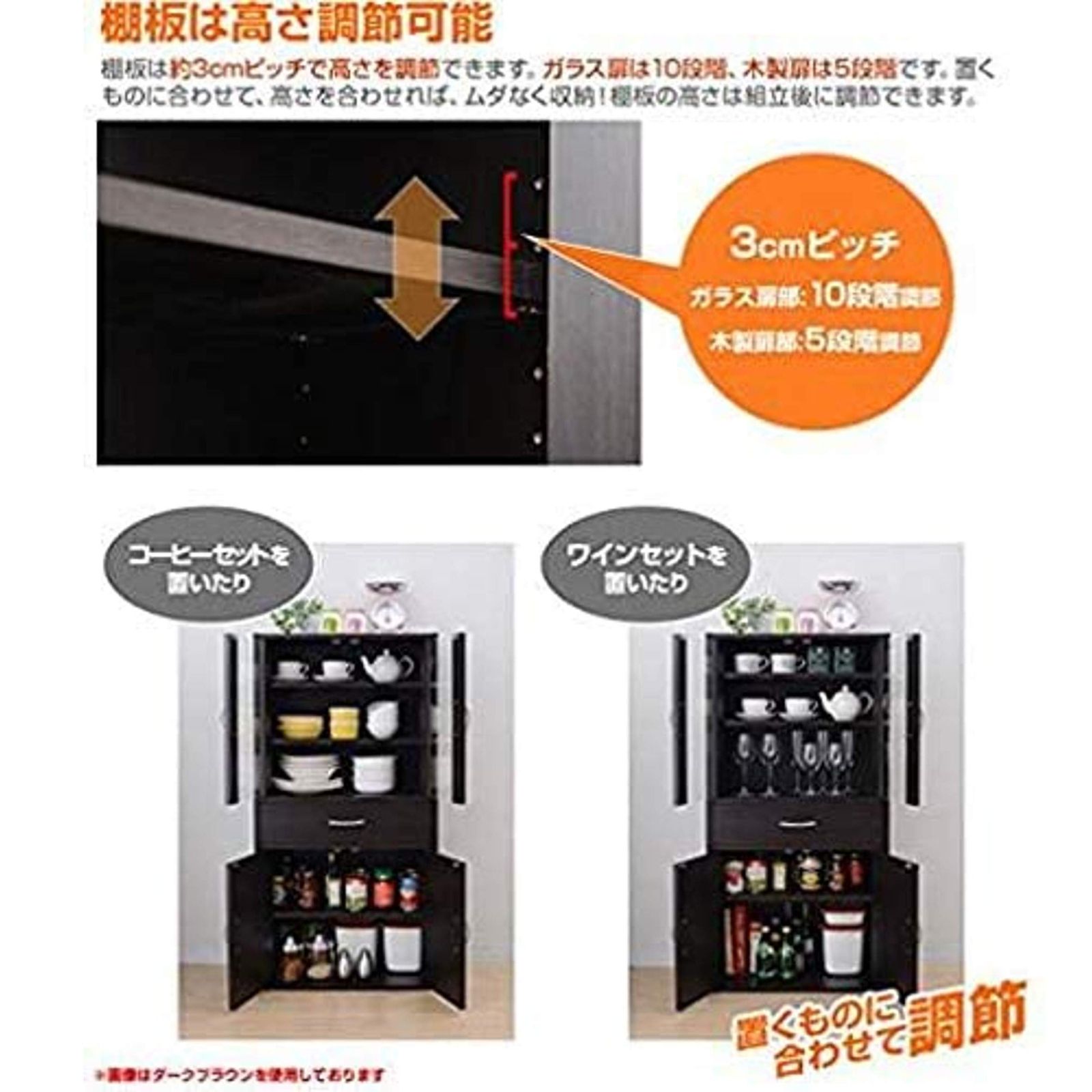 素材・材質:本体=プリント紙化粧繊維板、扉=ガラス
