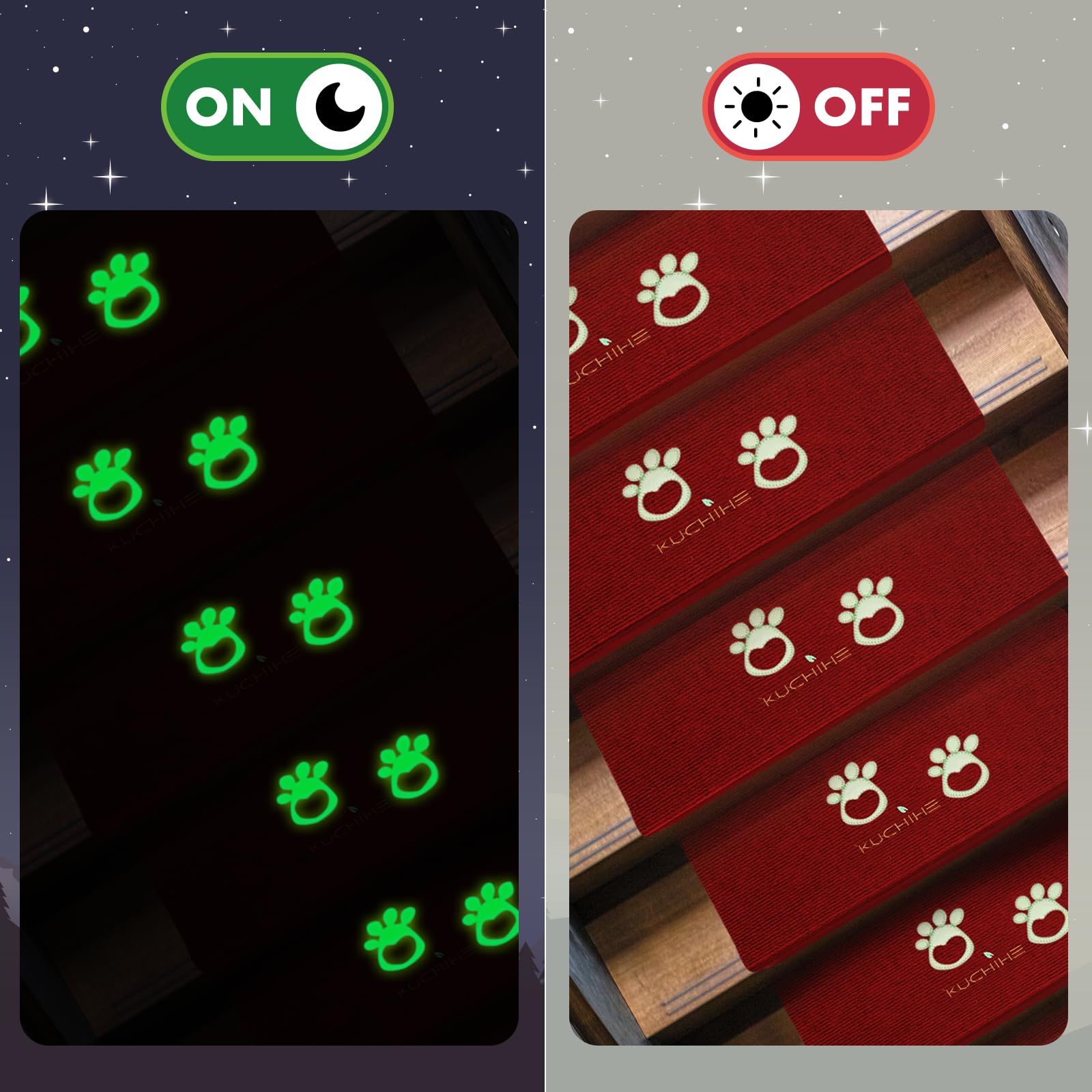KUCHIHE 階段マット 階段 滑り止めマット 犬 猫 階段滑り止めマット 蛍光 滑り止め 折り曲げ 防音 洗える キズ防止 蛍光 約55x22cm 15枚セット おしゃれ 吸着 騒音対策 厚さ4.5mm (55X22(cm) red)