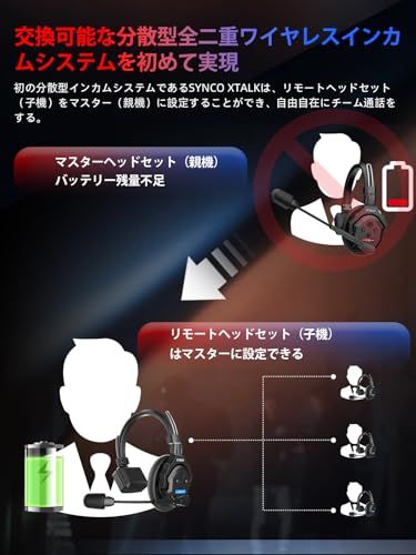 SYNCO XTALK X 2 ワイヤレスインカムヘッドセット 4 GHz全二重通信 最大24時間駆動 ノイズキャンセリング搭載 350 m安定接続 リアルタイムモニタリング対応 撮影現場 テレビ制作 チーム通信 XTA f 0710839