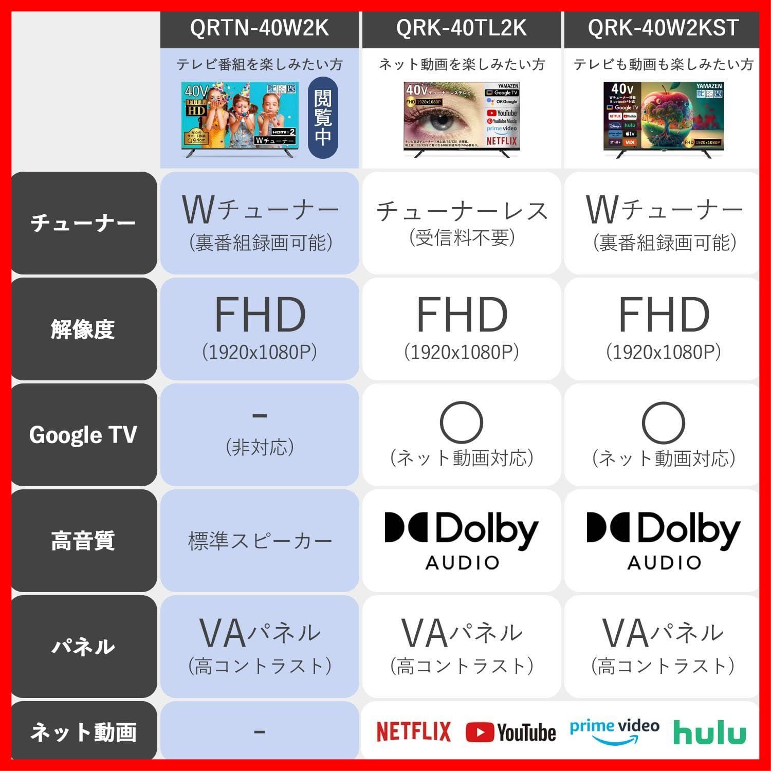 数量 Wチューナー テレビ 液晶 40インチ 山善 フルハイビジョン QRTN 40 W 2 K