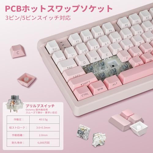 【ホットスワップ対応カスタムキーボード】スイッチとキーキャップは自由に交換可能(キーキャッププラー・スイッチプラー付属)。ホットスワップ対応PCBを採用しており、はんだ付け不要で3ピン/5ピンのスイッチを簡単に交換できます。Z-101メカニカルキーボードには、事前に潤滑されたリニアスイッチを搭載。スムーズで心地よい打鍵感と上質な打鍵音を実現し、ゲームプレイでも素早い反応を発揮します。